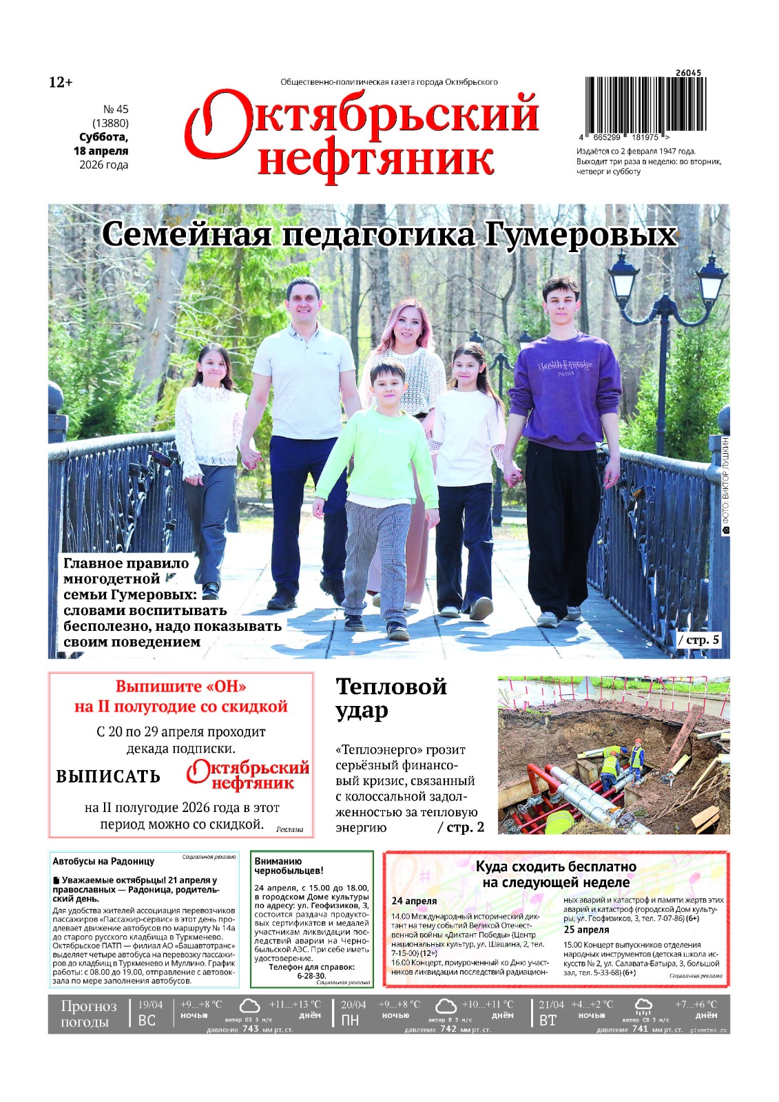 Свежий выпуск газеты «Октябрьский нефтяник» уже в продаже