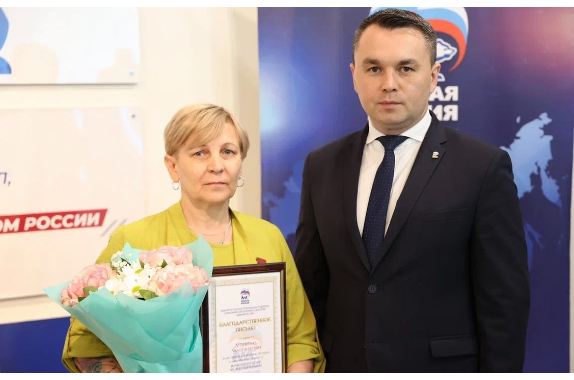 Благодарственным письмом руководителя Регионального исполкома Партии «Единая Россия» Руслана Насретдинова наградили ещё одного активиста штаба — Аллу Дубинину. Её сын, участник спецоперации, младший сержант Константин Дубинин, погиб при исполнении воинского долга.