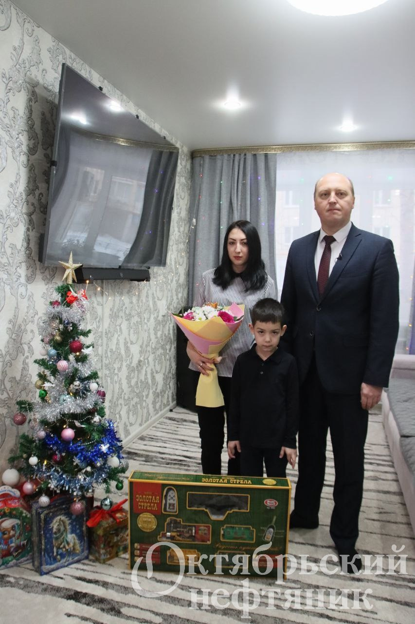 В преддверии Нового года Алексей Пальчинский и заместитель главы по соцвопросам Октябрь Латыпов поздравили семью военнослужащего с позывным «Ислам», который с 2022 года проходит службу в зоне проведения спецоперации.