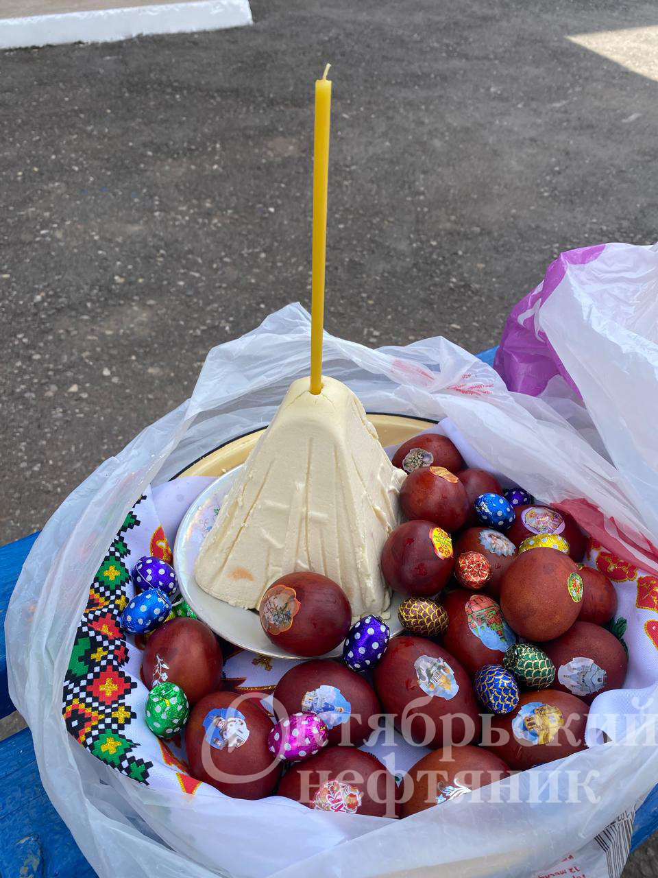 В храмах Октябрьского организовано освящение пасхальной снеди. Горожане освящают яйца, куличи, творожные пасхи, которыми будут разговляться.