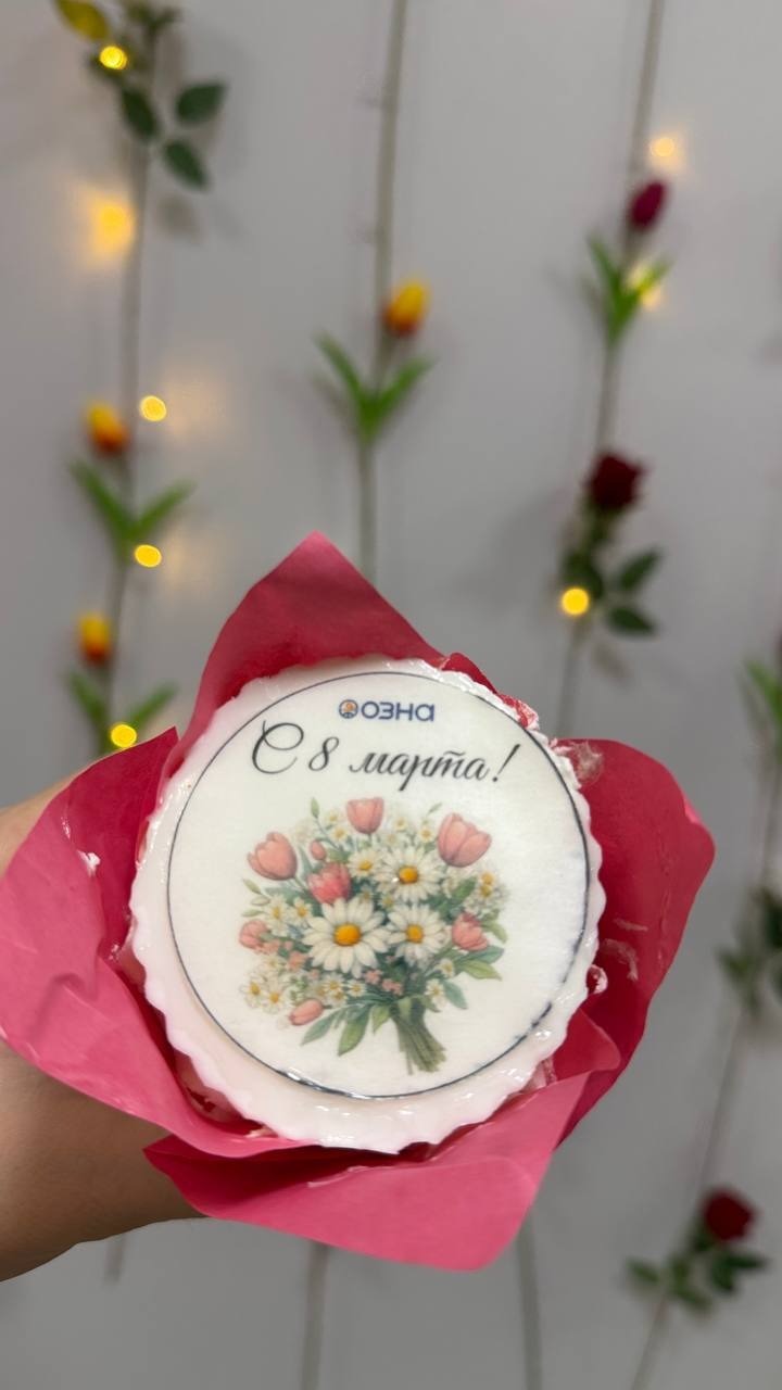 Для прекрасной половины компании они устроили День признания в том, что женщины в их коллективах самые-самые. Каждой вручили пирожное с надписью «Пусть каждый день будет таким же цветочным, как сегодня!» и «8 Марта».