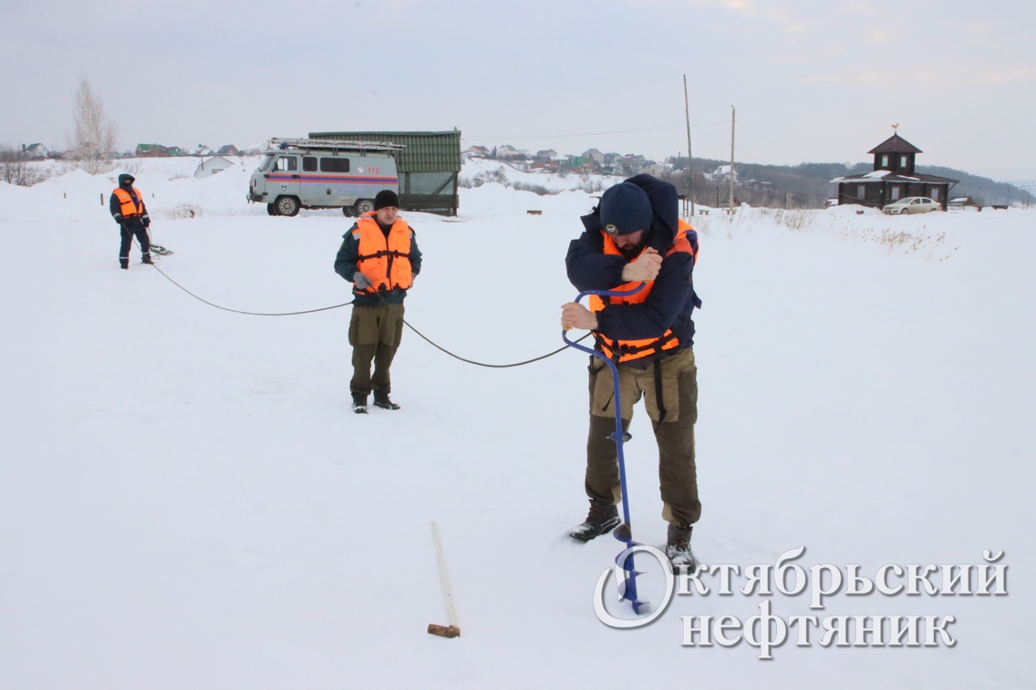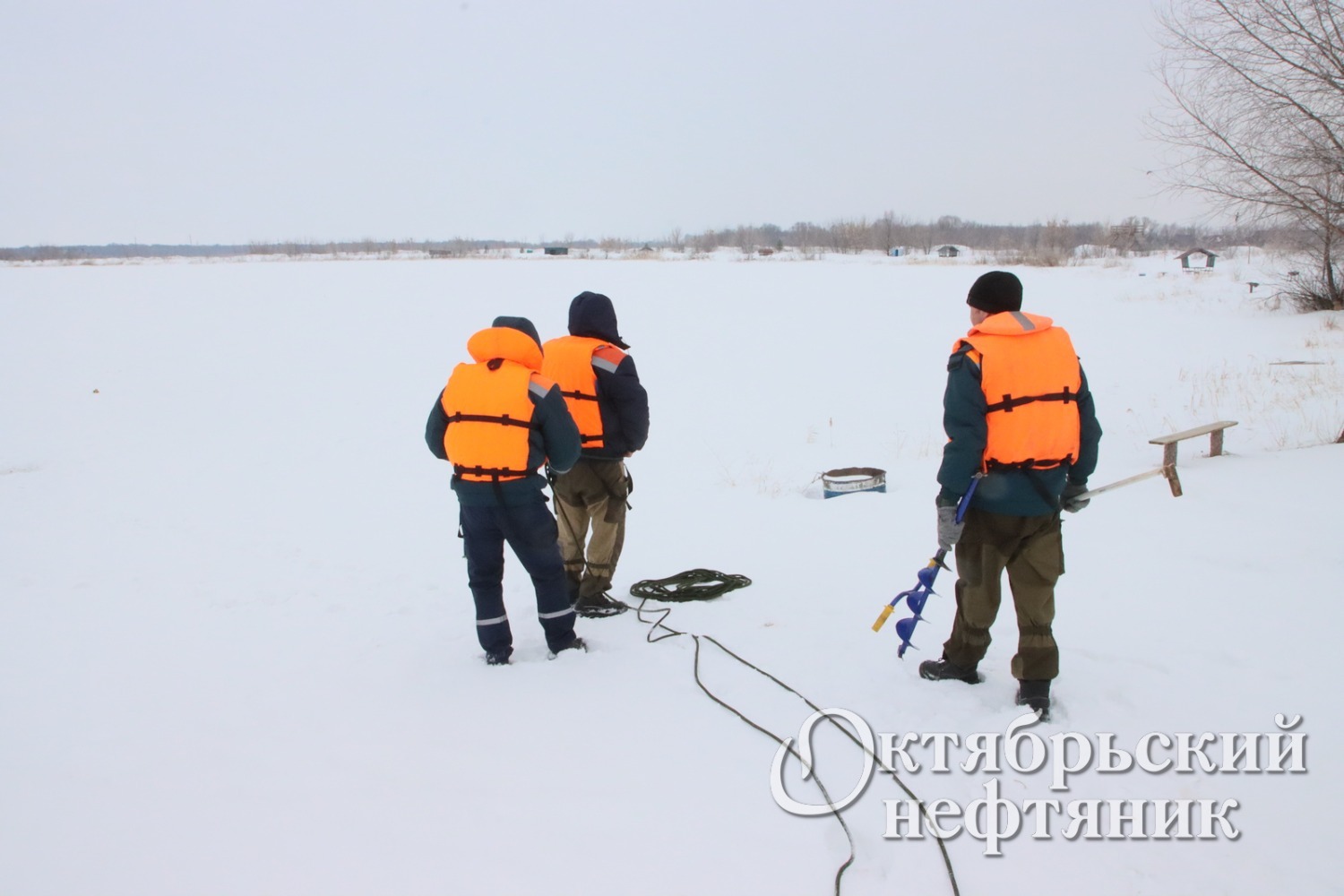 Накануне соревнований рыбаков спасатели замерили толщину льда на озере Алтынкуль, которая составила 65 см и проверили безопасность нахождения людей на ледовом пространстве.