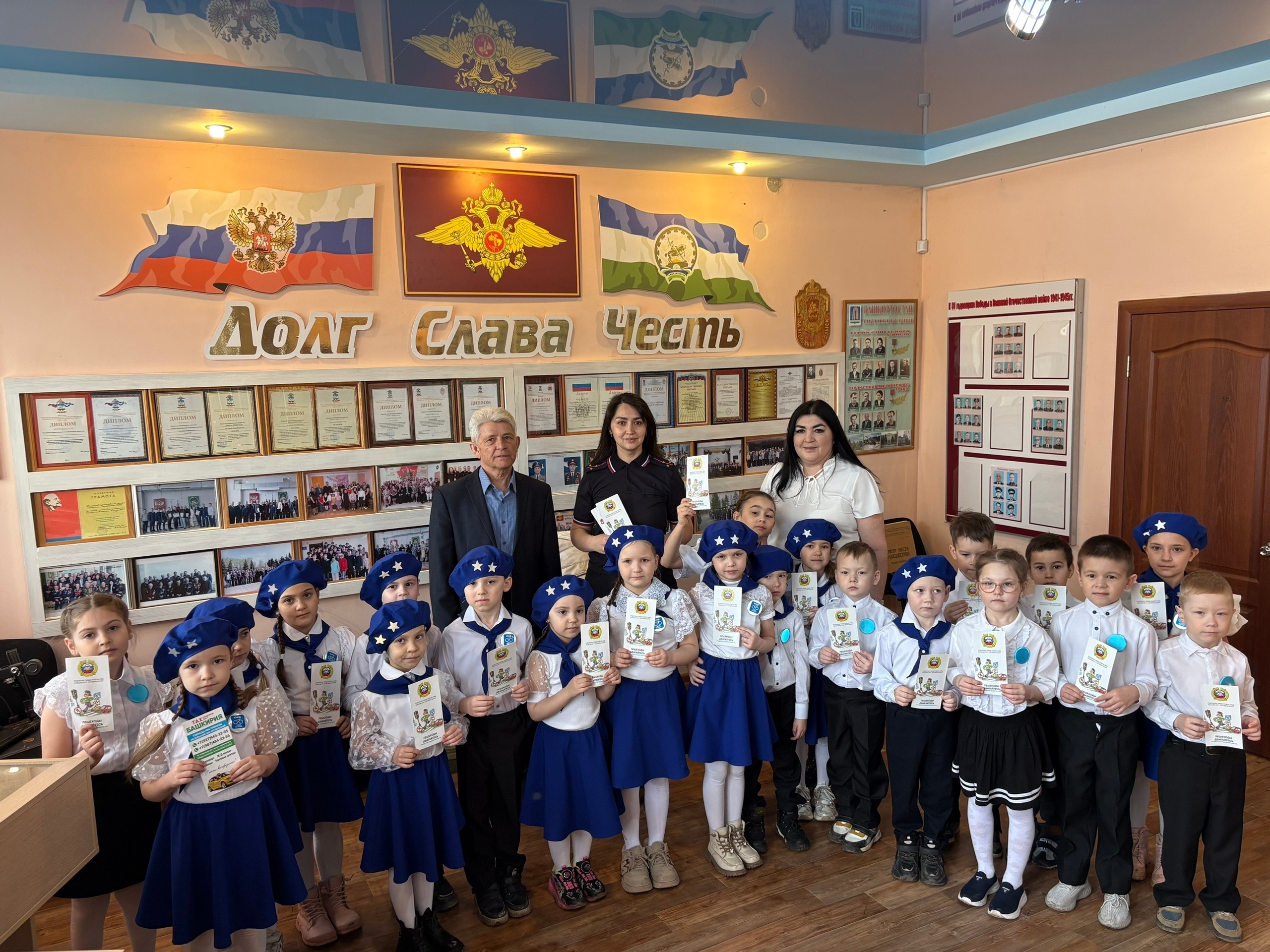 Для ребят провели увлекательную лекцию о правилах дорожного движения, объяснили значение дорожных знаков и сигналов светофора. Дети посетили музей отдела полиции, получили полезные памятки.