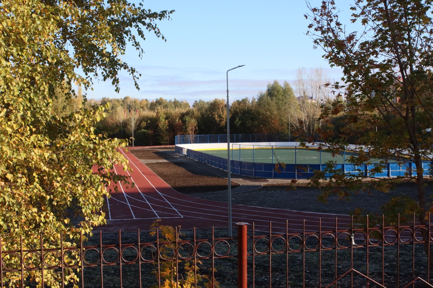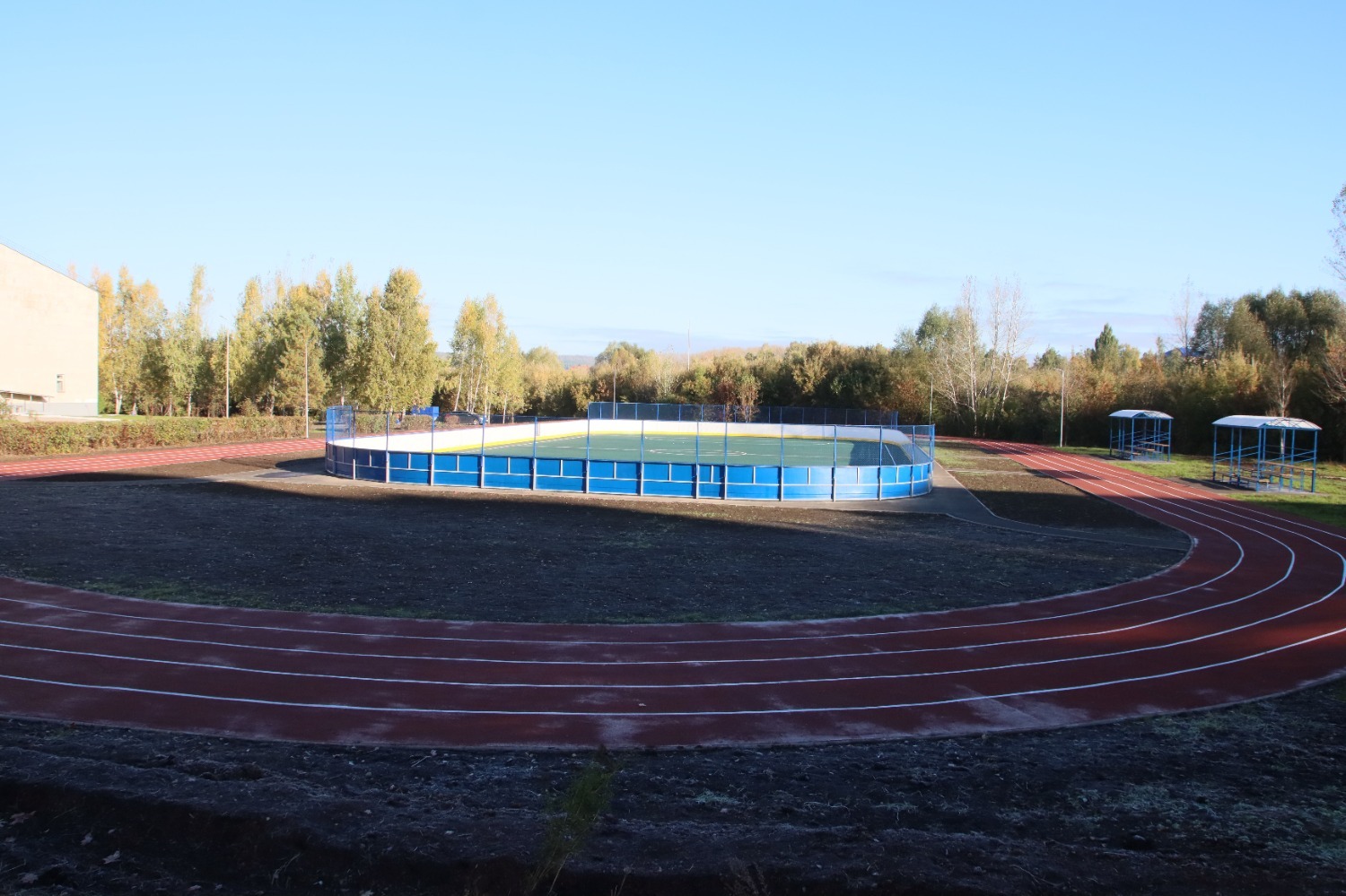 Площадка универсальная: здесь и хоккейная коробка, и беговые дорожки, и трибуны, и зоны отдыха. После открытия ребята сразу оценили все её плюсы.