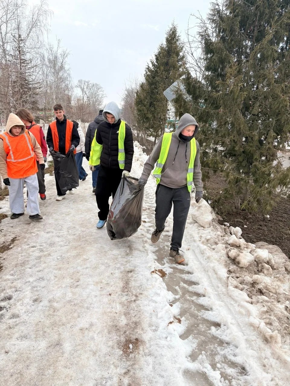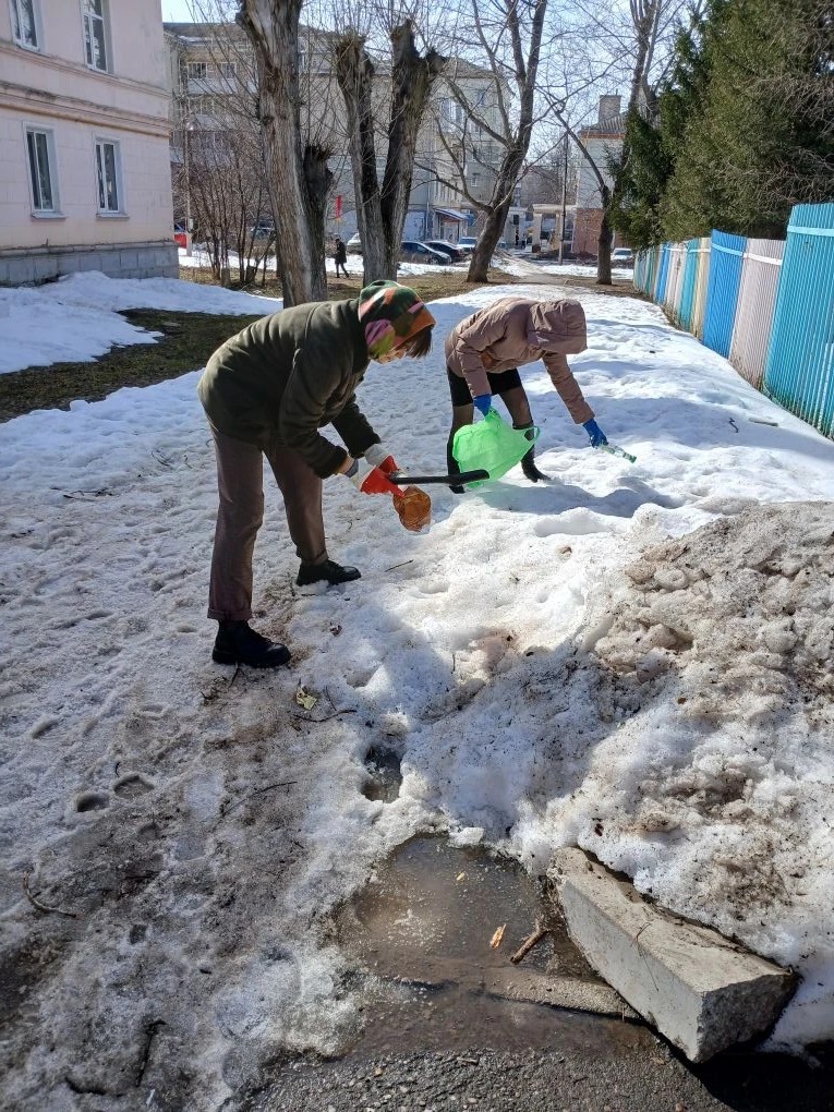 Более 400 жителей Октябрьского на этой неделе вышли на субботник. Они собирали мусор и разгребали снеговые навалы на тротуарах и межквартальных дорожках.