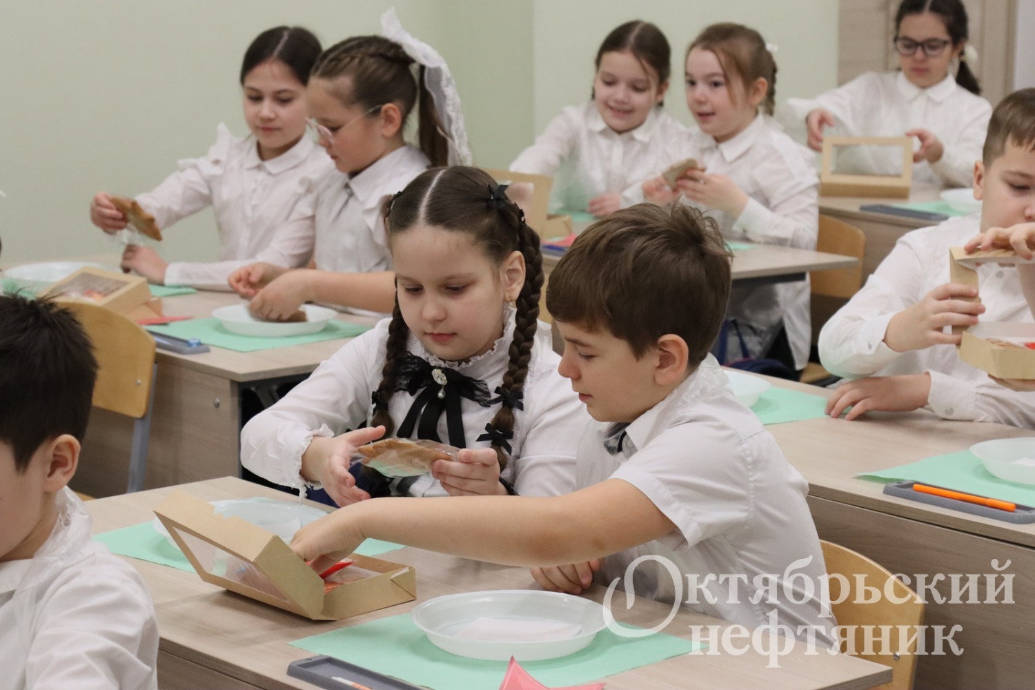 Расписать пряники для бойцов — идея мамы ученицы 3в класса Анастасии Захаркиной. Леся Васильевна — самозанятый кондитер. Она испекла 100 пряников. Часть из них расписала с помощью специального принтера, а другую часть и глазурь нескольких цветов принесла в класс.