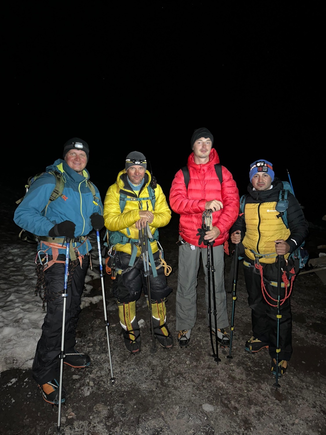 Спустились, прошли ледовую тренировку, научились пользоваться ледорубом, и в 10 вечера группа из четырёх человек двинулась на штурм Эльбруса.