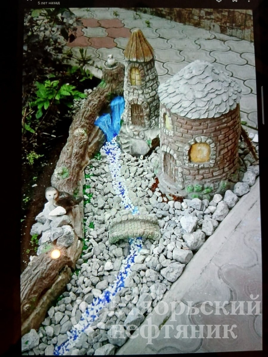 Заливало подвал. Место, откуда вода протекала, Дамир Садитович забетонировал. Получилось надежно, но… некрасиво. Из пластиковых бутылок Резеда Габдулмазитовна сделала башенку, потом мельницу, из голубых камешков для аквариума — ручеёк.