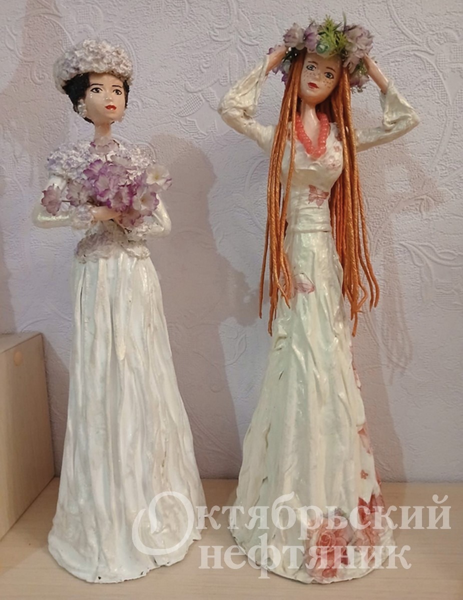 В старину фарфоровыми изделиями были не только предметы посуды, которые изобилуют сейчас, но и изящные статуэтки дам, кавалеров, мужчин, женщин, детей и композиции из их групп. Эти музейные экспонаты и напоминают фигурки, выполненные Резедой Шакировой.