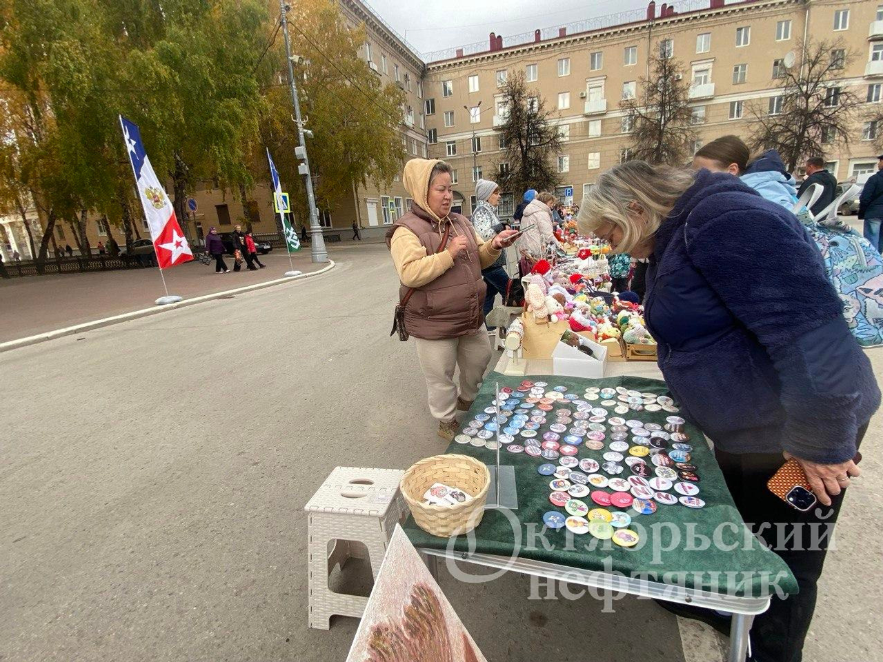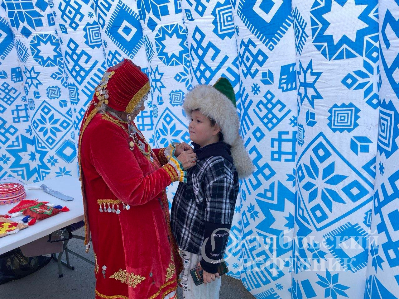 Рядом со сценой жители могли примерить на себя нагрудник с башкирским орнаментом, приобрести изделия мастеров Октябрьского.