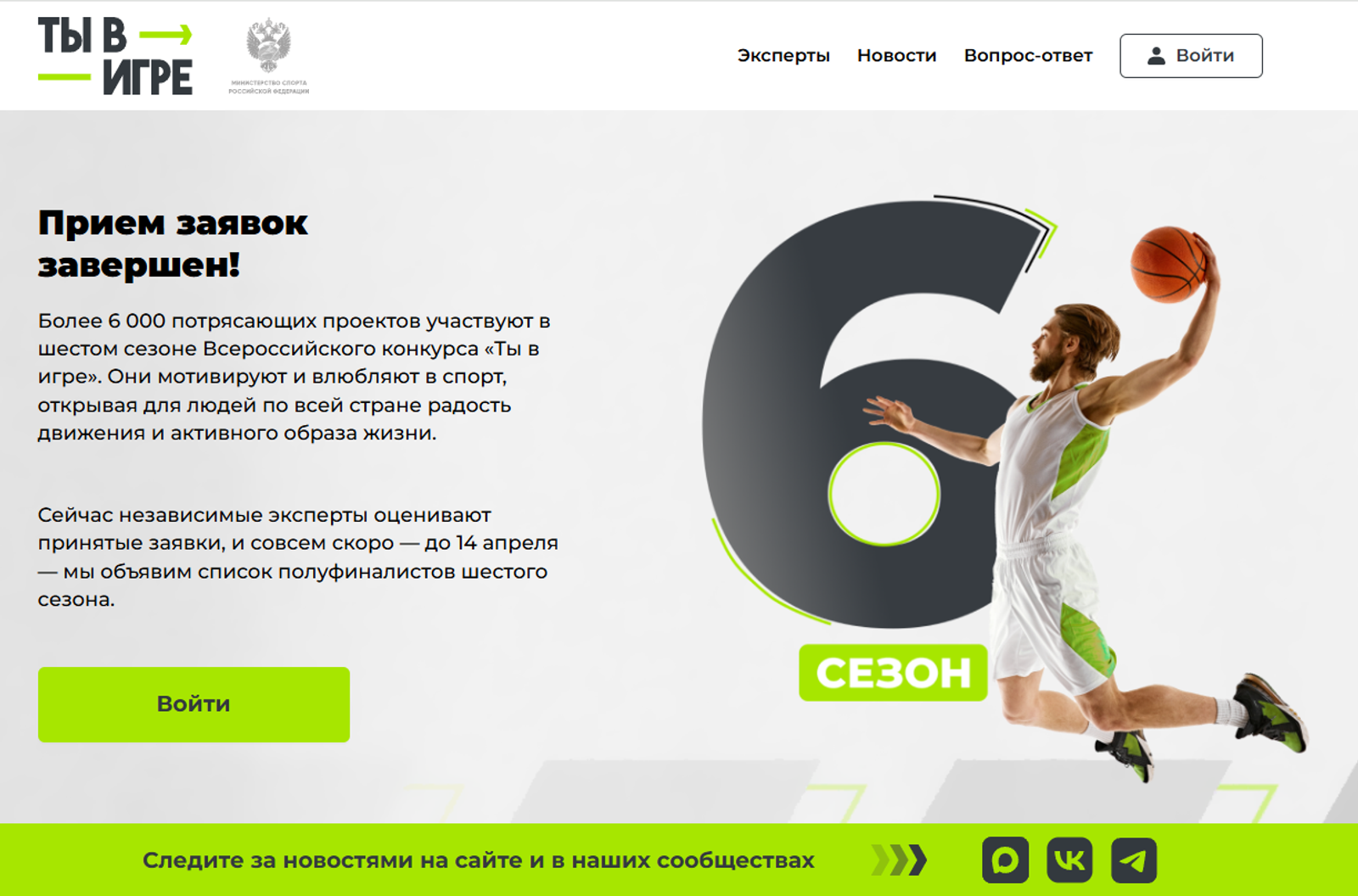 Всероссийский конкурс спортивных проектов «Ты в игре» проводится при поддержке нацпроекта «Спорт России».