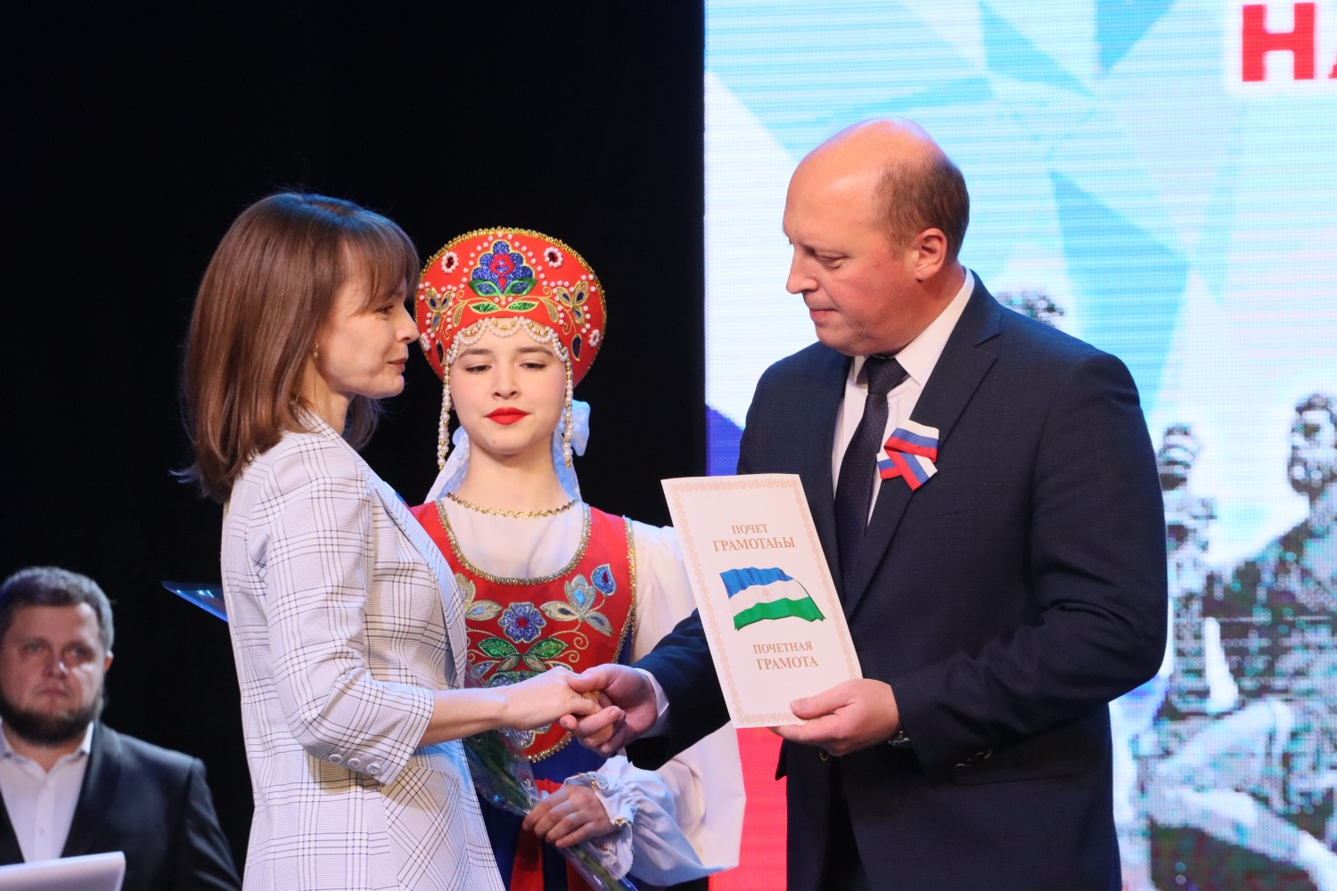 Мероприятие открыла песня «Родина» в исполнении академического хора Октябрьского музыкального колледжа.