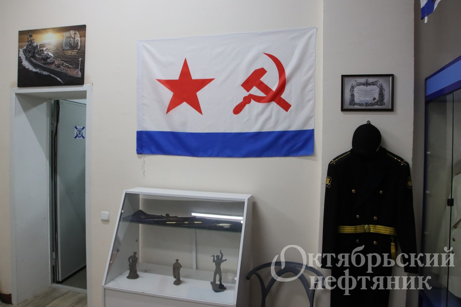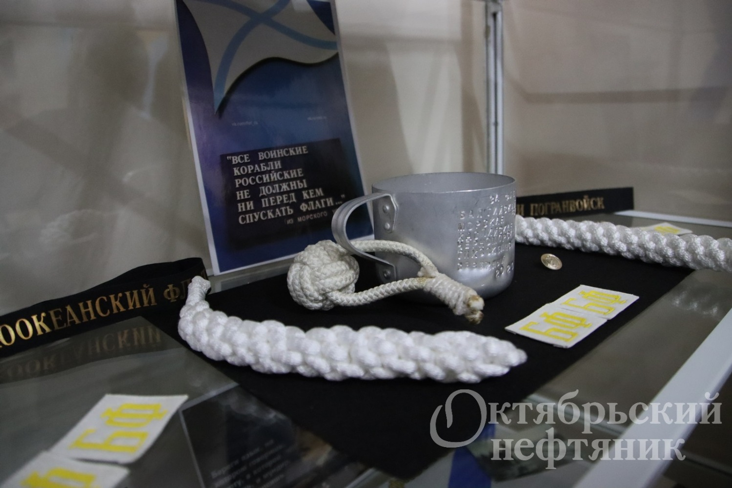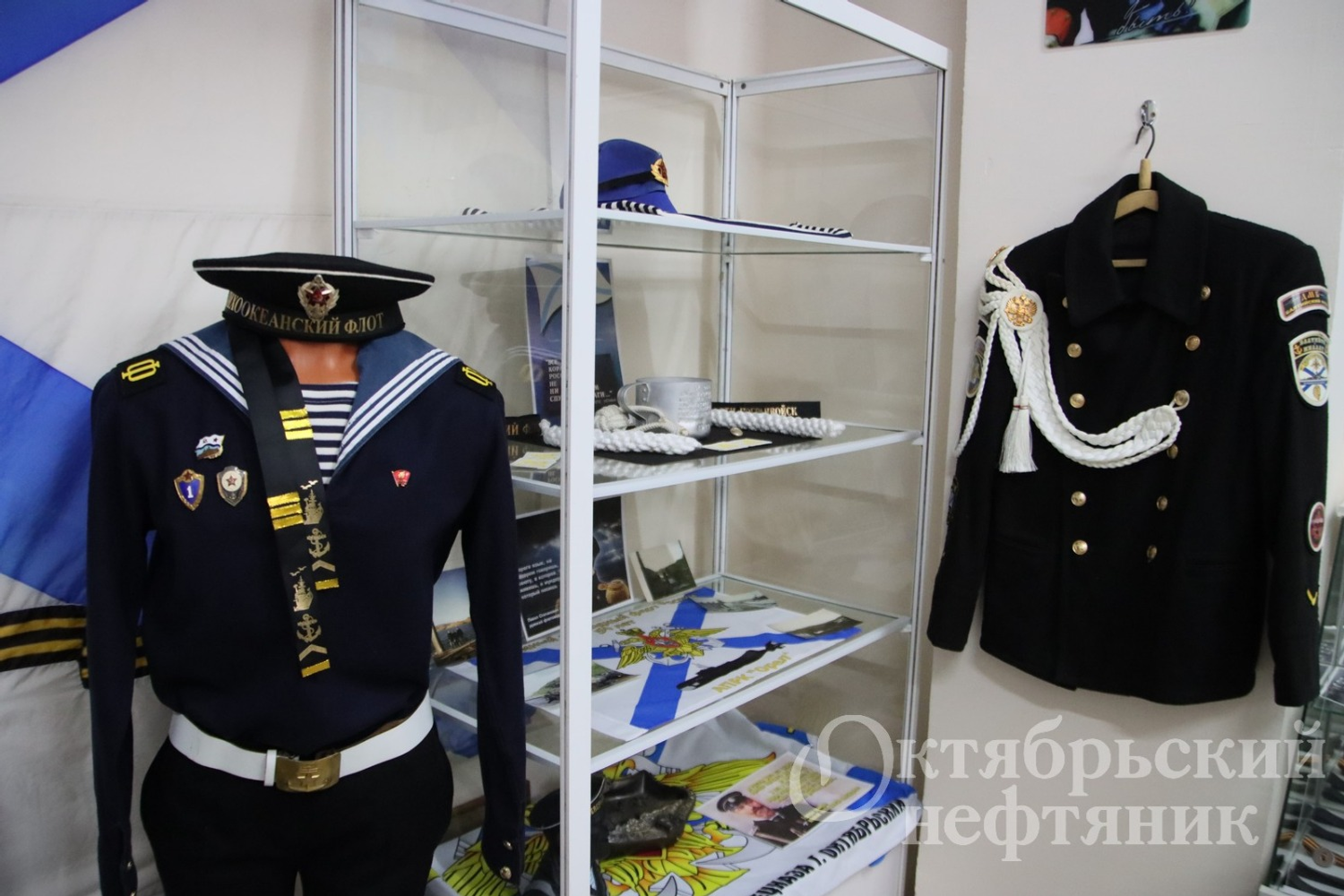 Здесь представлены ленточки, ордена, знаки отличия, флаги, макеты кораблей, форма, холодное оружие и многие другие атрибуты военно-морской службы, которые горожане собирали на протяжении шести лет. В числе экспонатов есть и раритетные издания уставов Вооружённых Сил СССР, Корабельный устав Военно-морского флота 1950-х годов.