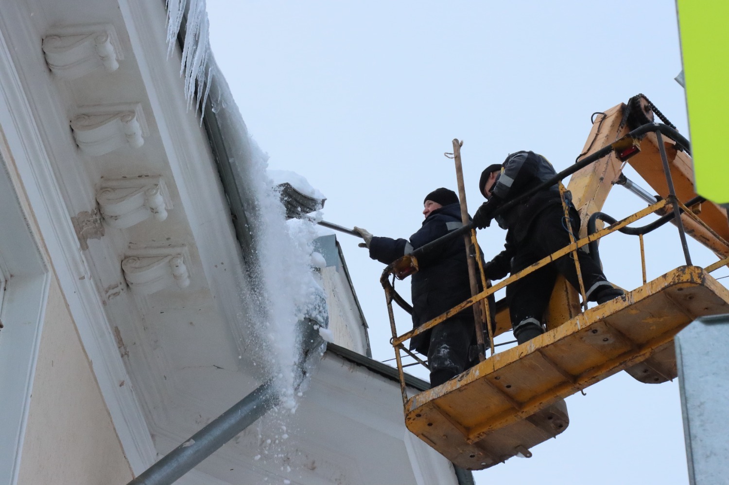 В «Жилуправлении» сообщили, что работа по очистке крыш будет проводиться до конца зимнего сезона.
