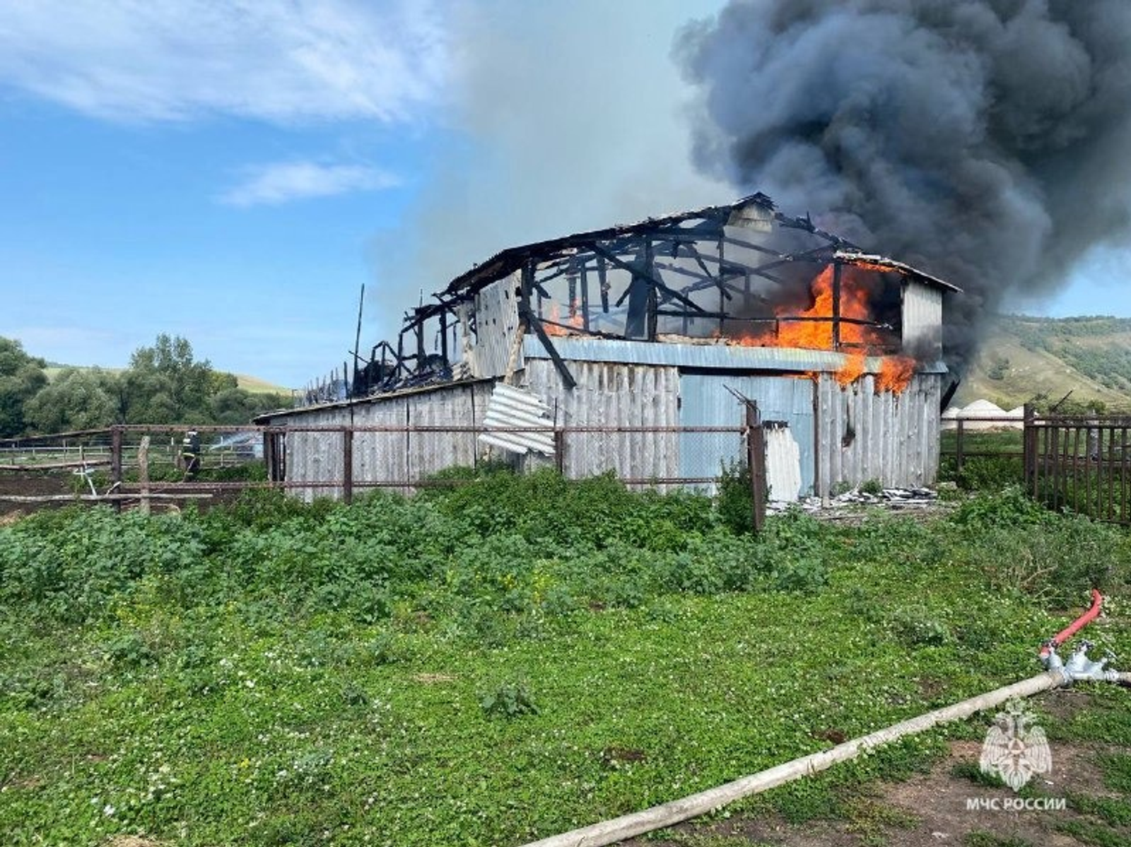 В деревне Арларово Ишимбайского района днём вспыхнул пожар на территории сельскохозяйственного предприятия. Полностью сгорела дощатая конюшня размером 50 на 10 метров и запас кормов.