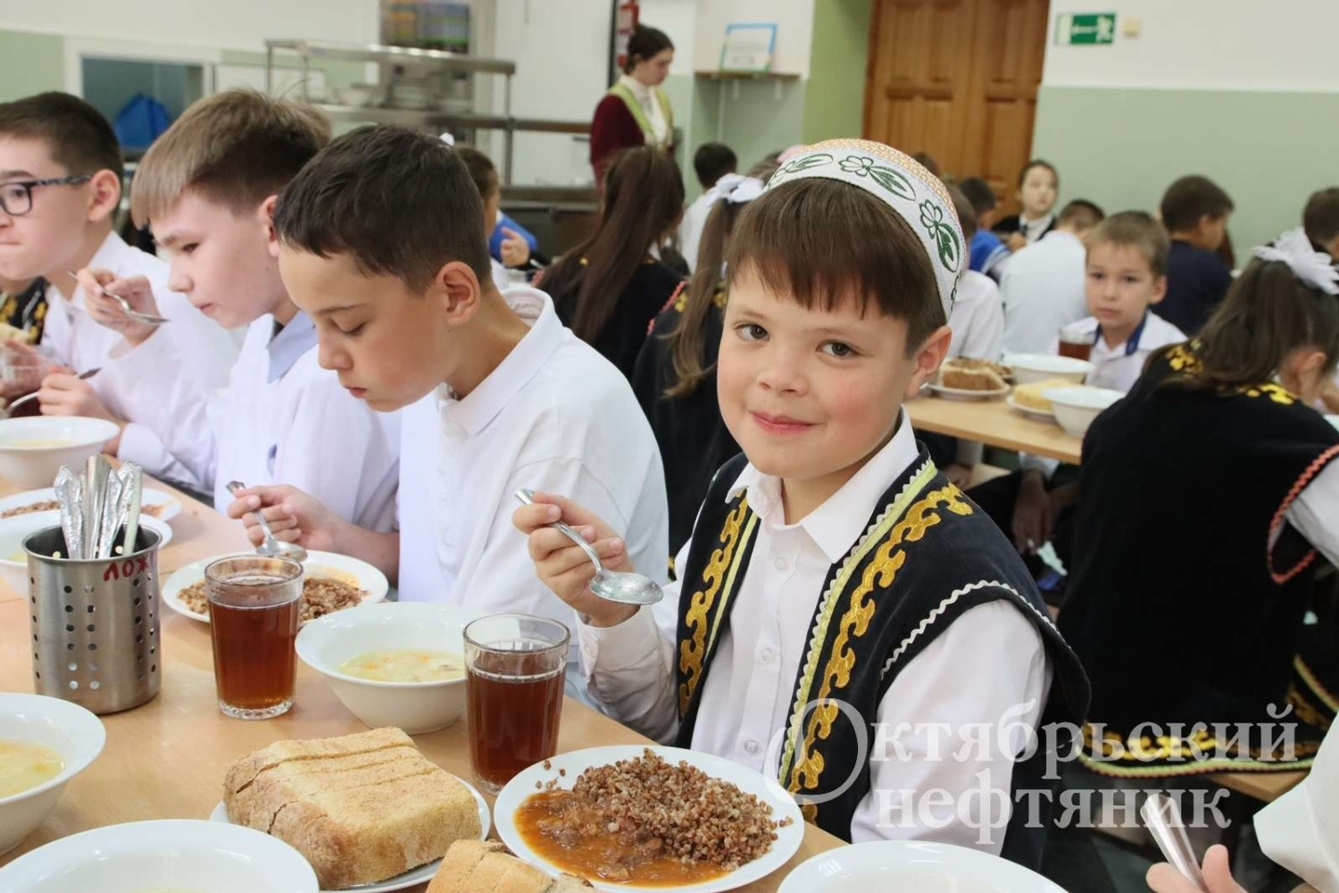 Презентация новинки прошла во всех образовательных учреждениях в преддверии Дня национального костюма. Ученики гимназии № 4 продегустировали блюдо празднично — в национальных башкирских костюмах.