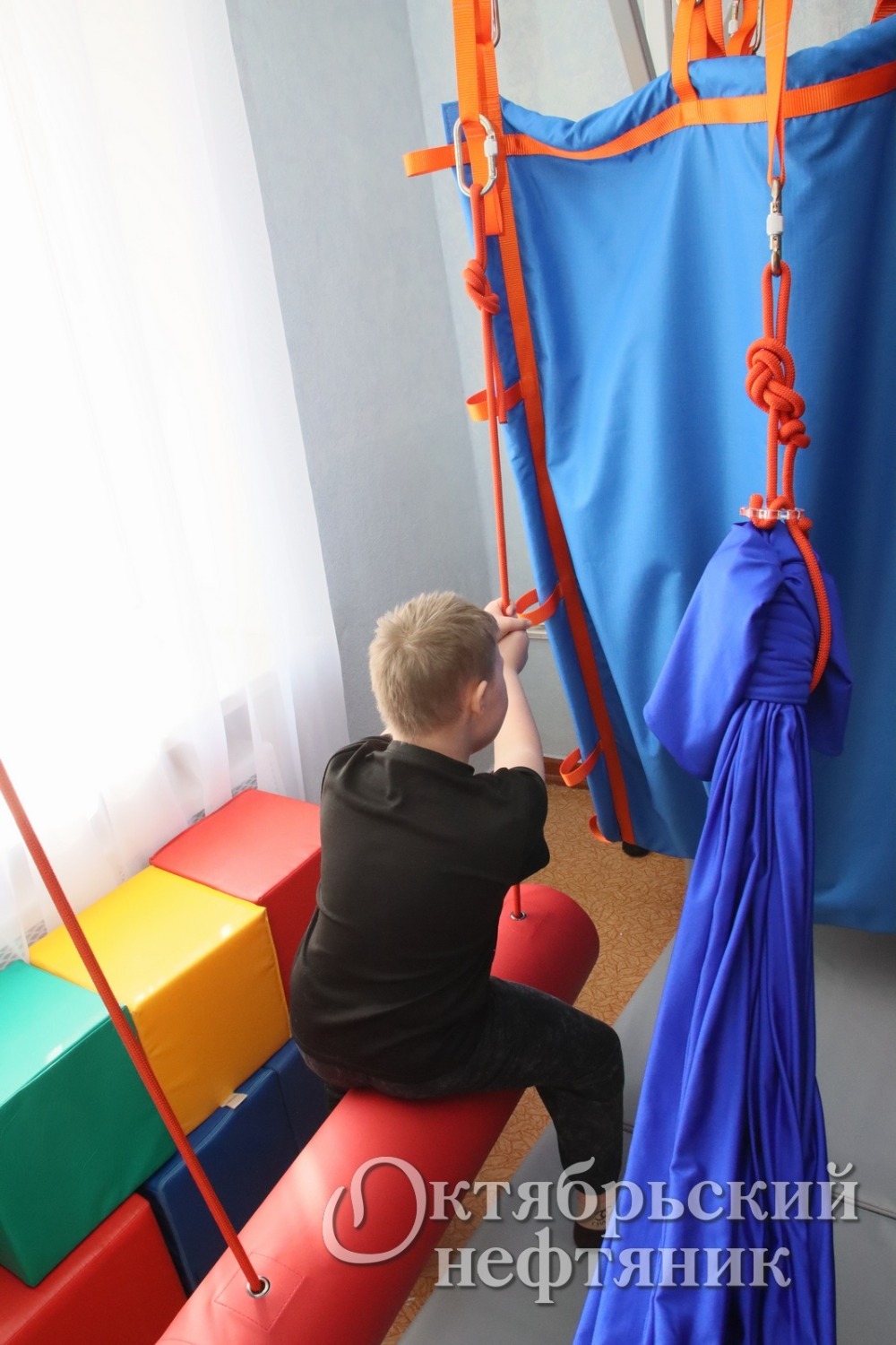 Самым интересным для детей стал «Дом Совы» — дорогостоящее, но необходимое для развития оборудование закупили на средства гранта. Здесь и небольшой тоннель, и гамаки, и подвесной мат, на котором мальчики и девочки стараются удержать равновесие.