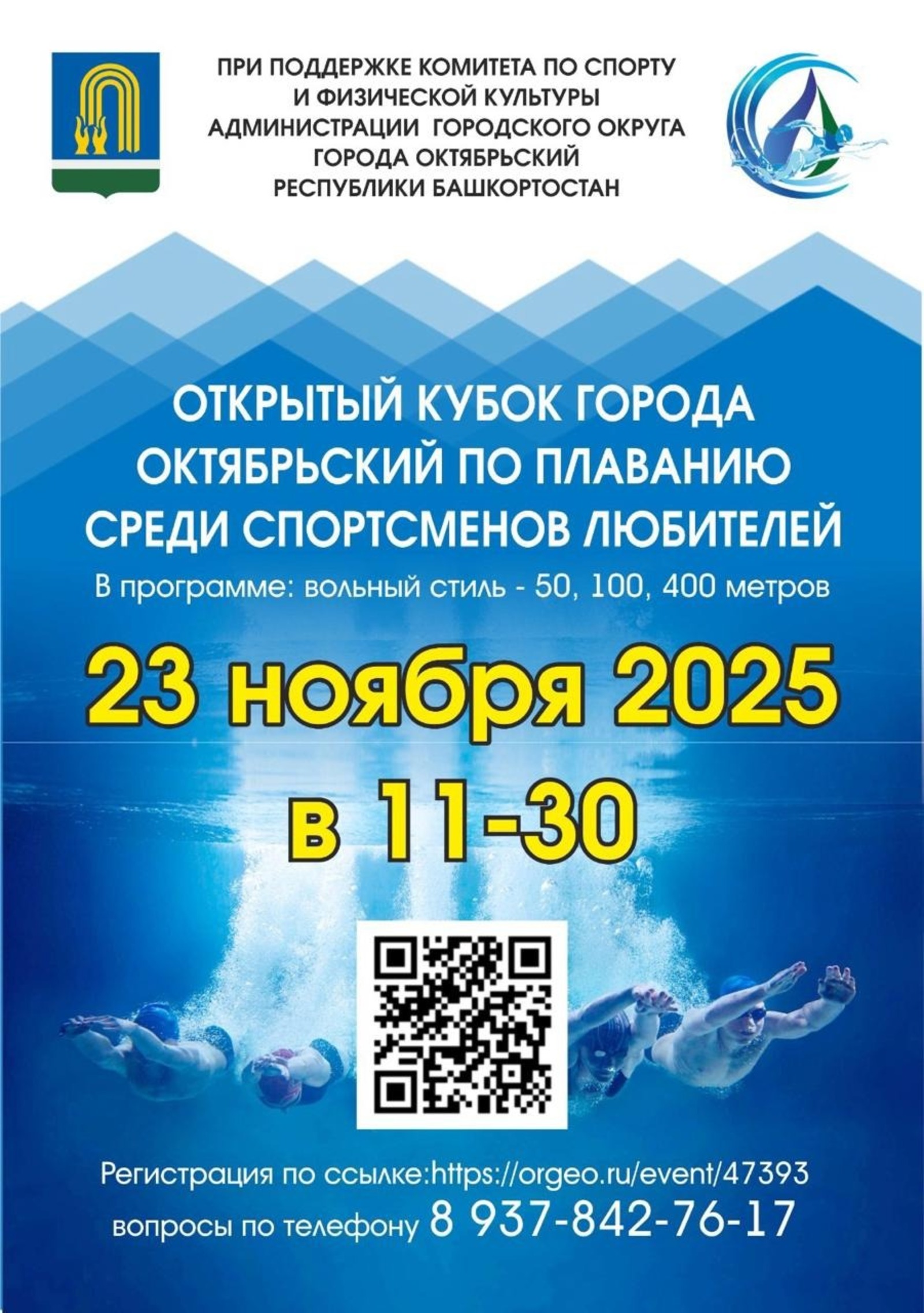 Участники в возрасте 18 лет и старше будут состязаться на дистанциях по выбору — 50, 100 и 400 метров вольным стилем. Победителей ждут грамоты, медали и главный трофей состязаний — кубок.
